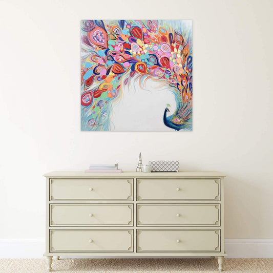 Dipinto ad olio fatto a mano arte moderna pavone astratto. Dimensioni 100x100cm. PRONTA CONSEGNA.