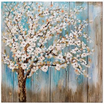 Dipinto ad olio fatto a mano Alberi in fiore Primavera. Dimensioni 100x100cm. DIPINTO IN PRONTA CONSEGNA.