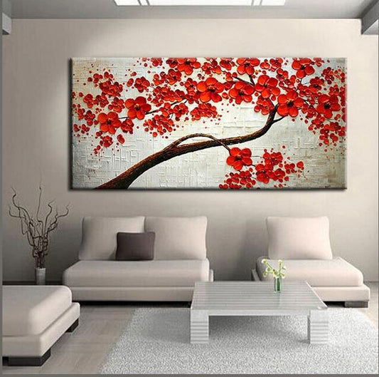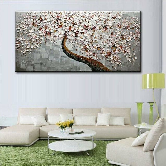 Dipinto ad olio fatto a mano Albero fiorito. Dimensioni 120x60cm. PRONTA CONSEGNA.