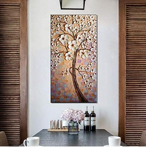 Dipinto ad olio fatto a mano Albero fiorito sfondo astratto. Dipinto con tecnica 3D in rilievo. Dimensioni 60x120cm. PRONTA CONSEGNA.