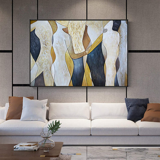 Dipinto ad olio fatto a mano arte astratta, raffigurante silhouette di persone. Varie dimensioni disponibili. DIPINTO SU RICHIESTA.