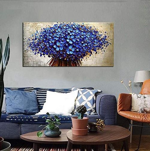 Dipinto ad olio fatto a mano bouquet di fiori blue su fondo astratto. Varie dimensioni disponibili su richiesta. DIPINTO SU RICHIESTA.