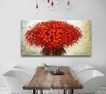 Dipinto ad olio fatto a mano bouquet di fiori rossi su fondo astratto. Varie dimensioni disponibili su richiesta. DIPINTO SU RICHIESTA.