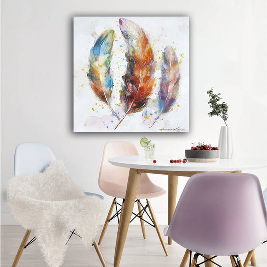 Dipinto ad olio fatto a mano arte moderna astratto piume colorate. Dimensioni 100x100cm. PRONTA CONSEGNA.