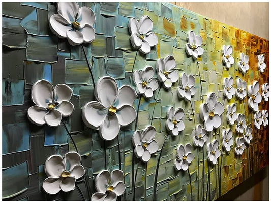 Dipinto ad olio fatto a mano fiori. Dipinto con tecnica 3D in rilievo. Dimensioni 120x60cm in PRONTA CONSEGNA.