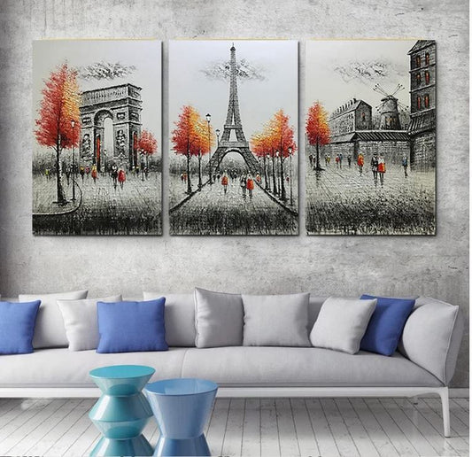 Dipinto ad olio fatto a mano Parigi, Torre Eiffel, Moulin Rouge, Arc de triomphe. Dimensioni 150x75cm. PRONTA CONSEGNA.