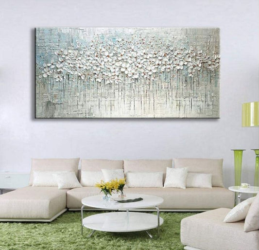 Dipinto ad olio fatto a mano fiori bianchi su fondo astratto. DIPINTO SU RICHIESTA.