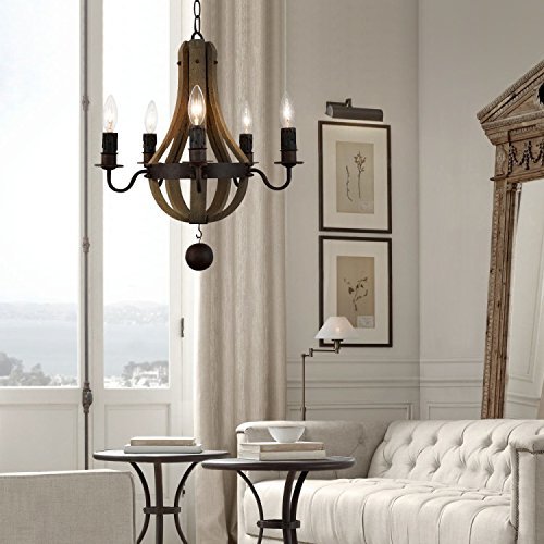 REMO - Lampadario rustico in stile retrò in legno massello