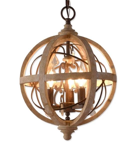 THOLOS - Lampadario rustico in ferro e legno antichizzato