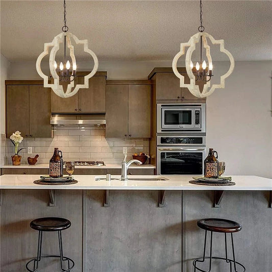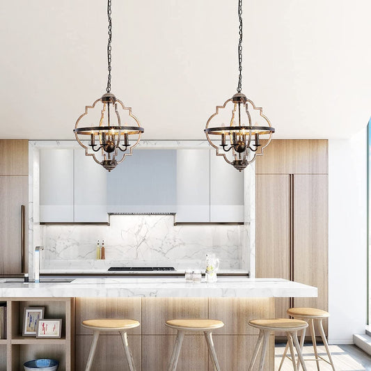 QUADRIFOGLIO V.1 - Lampadario elegante dal design rustico moderno in legno anticato