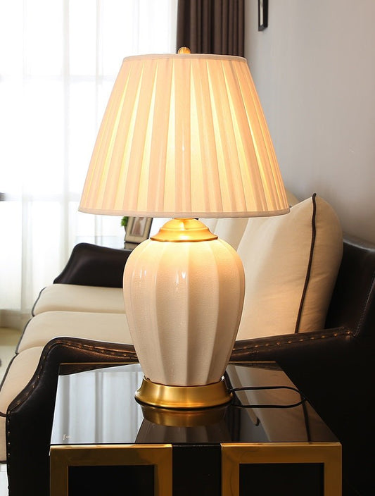 CALIPSO - Lampada da tavolo in ceramica colore avorio con inserti in metallo dorato