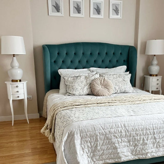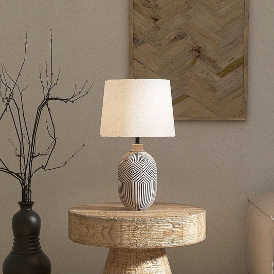 PANDORA - Lampada da tavolo in metallo in ceramica e paralume in tessuto di lino