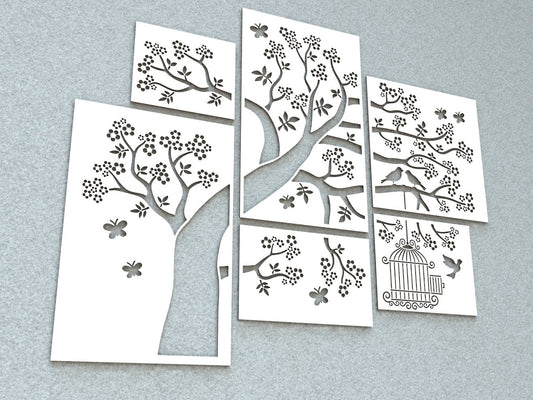 Pannelli quadri traforati Uccelli Rami Autunno - Decorazione Arredo Casa Parete Muro