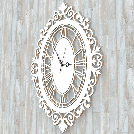 Orologio Barocco a parete Arredo Design Bianco Artigianale Shabby Grande 60x42cm