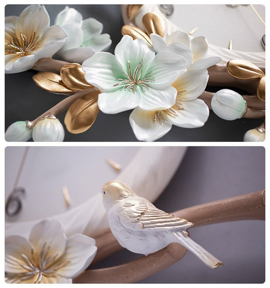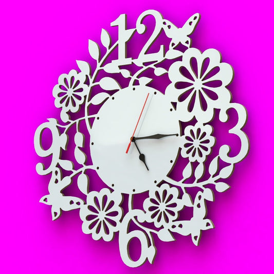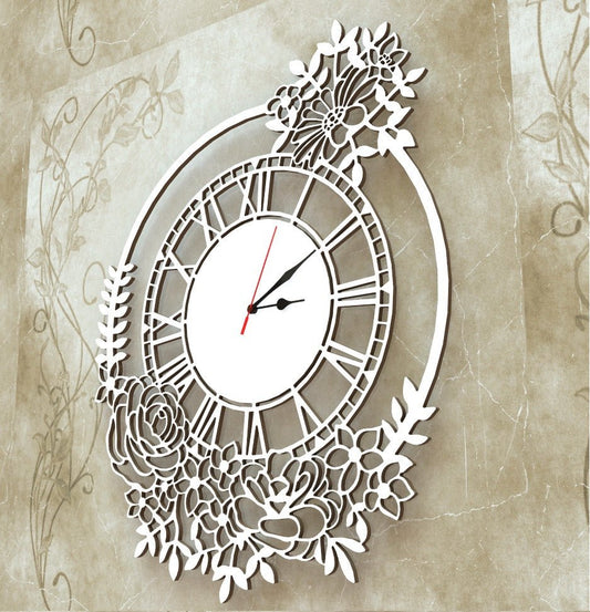 Orologio Natura Floreale a parete Arredo Design Bianco Artigianale Grande 45cm