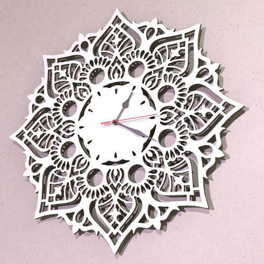 Orologio Mandala Bianco a parete Design Arredo Artigianale Grande 48cm