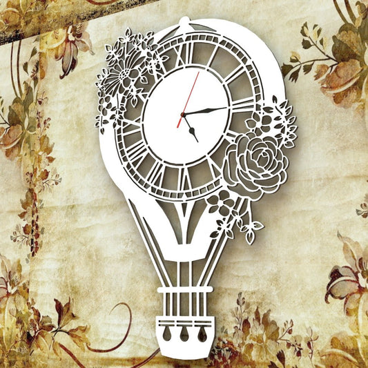 Orologio Mongolfiera Shabby chic a parete Design Bianco Artigianale Grande 63x43 cm