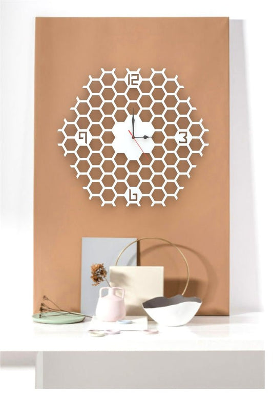 Orologio Nido d'api bianco a parete Arredo Design Artigianale Grande 48cm